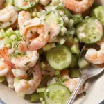 If you like bright, simple flavors with a creamy bite, this salad is going to be your new favorite. The texture is spot on. You get that crisp cucumber crunch, the gentle snap of juicy shrimp, and a dressing that feels light but clings to everything just right. It is refreshing enough for a hot afternoon, yet filling enough to be lunch.