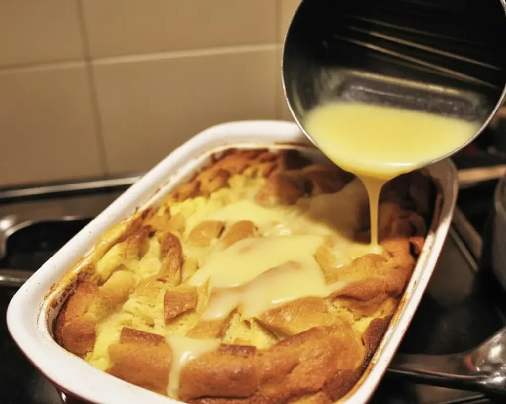 Substitutions are flexible. Non-dairy milk can work, though the pudding will be lighter. If you don’t have nutmeg, just use cinnamon. No raisins at home? Try chopped dates or apples. For the sauce, you can swap part of the milk for half-and-half if you want extra silkiness. The key is balancing liquid and bread so it’s moist but not wet.