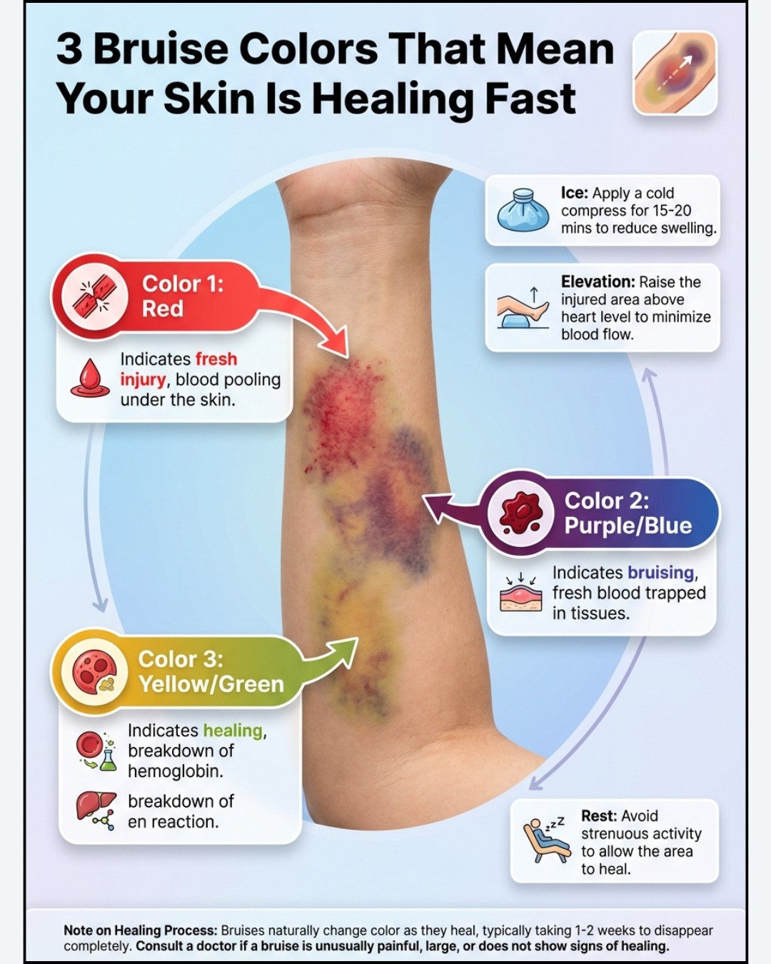 Ever noticed those odd shades on your skin after you accidentally whacked your shin on the coffee table? Yโknowโthe blue, purple, then this kinda green or yellow patch thatโsโฆ weirdly comforting? Yeah. Iโve been there. So if youโve been wondering, โAre these 3 bruise colors that mean your skin is healing fast?โ Well, the answer is actually pretty coolโfor once, weird colors on your body are a good thing. Turns out, just like figuring out what your skin is trying to tell you about your health (there’s way more to itโby the way, check out this super handy guide to common skin issues and their meanings), the changing shades of a bruise are a true clue about how quickly youโre bouncing back. (Ohโand if youโre in flip flops, there’s another guide about your feet and skin moisture levels. Itโs surprisingly interesting.)