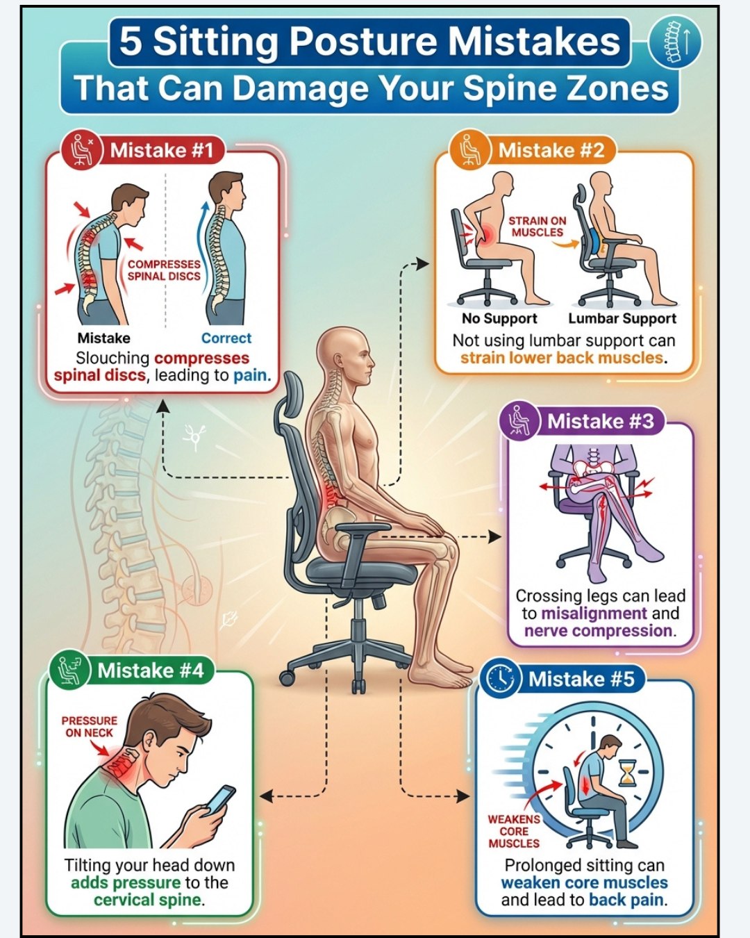 Ever had one of those days where your back feels like it’s been run over by a steamroller—even though you barely moved except to refill your coffee? Yeah, me too. Let’s face it: 5 Sitting Posture Mistakes That Can Damage Your Spine Zones are way more common than any of us like to admit. Most of us don’t sit right at our desks. Toss in a couple marathon Netflix sessions and…ugh. If you’re curious why you feel stiff, or dealing with creeping aches, you’re not alone! Want something fascinating? Sitting wrong can mess up different zones of your spine, not just your lower back. By the way, if you love quirky health hacks, check out these 5 cleaning combos that do more harm than good or see what your sleep position says about your spine. Okay, enough chit-chat. Let’s get into it.