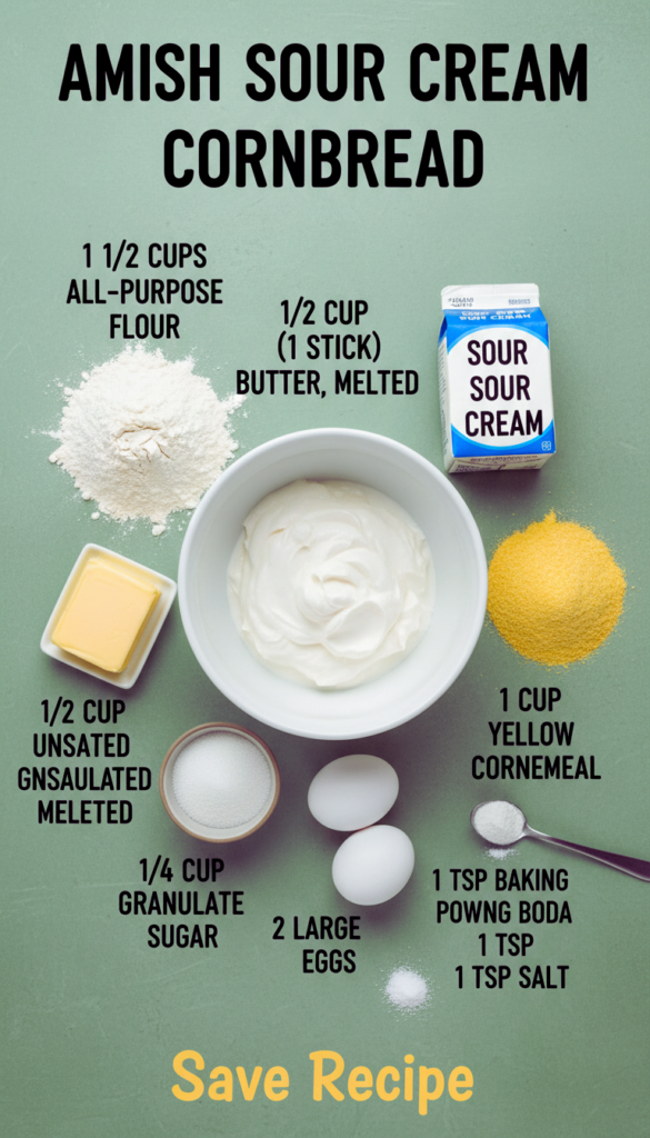 Here’s what you’ll need for a standard 8-inch square pan or 9-inch round skillet. The sour cream gives body and moisture, while a bit of sugar rounds out the flavor without turning it into cake.