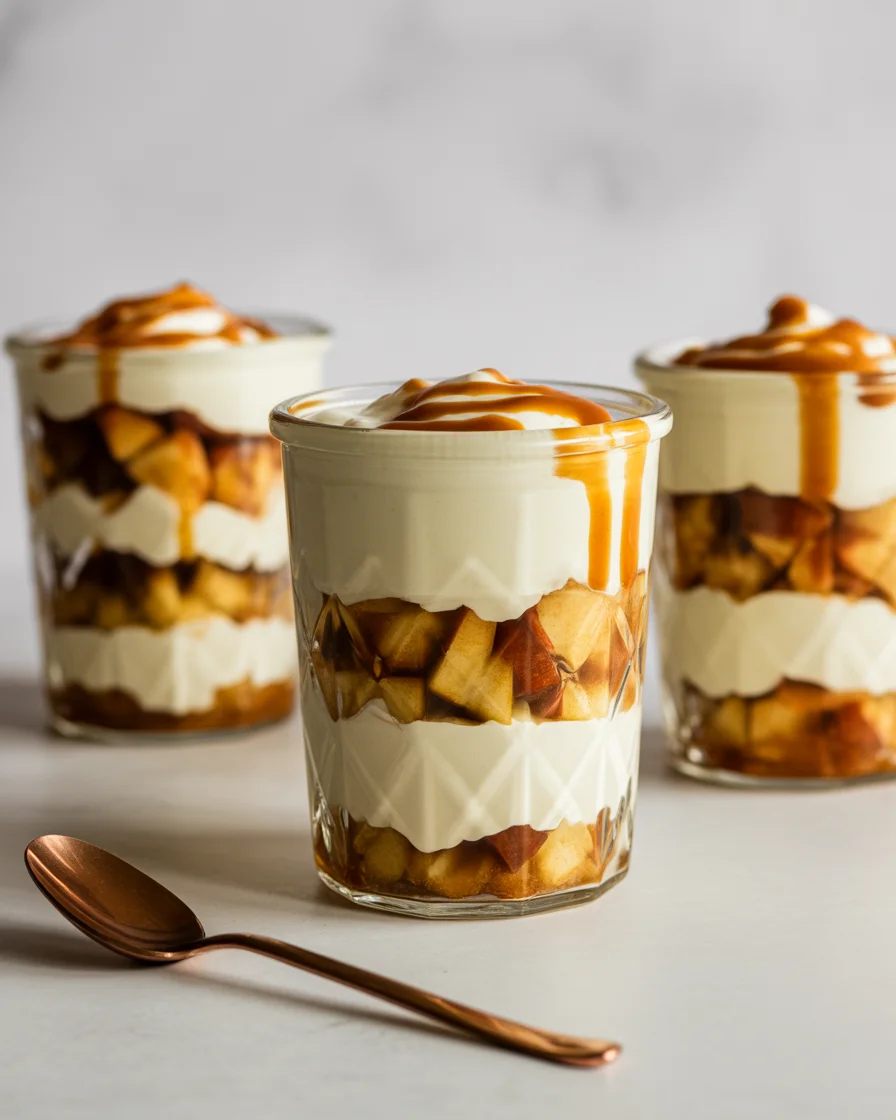 We made these for a fall potluck and they disappeared in minutes. The layers held up perfectly in mason jars and the caramel drizzle made them look so fancy. Zero leftovers, which is the best review. Jenna R.