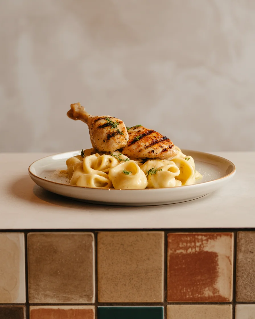 Asiago Tortelloni Alfredo with Grilled Chicken is the kind of dinner that makes a weekday feel a little fancy. Maybe you got home late and need something cozy, creamy, and fast. Maybe you’ve got a friend coming over and you want a dish that looks impressive without turning the kitchen upside down. This pasta checks every box. It’s rich but not heavy, cheesy but balanced, and it all comes together with simple steps you can totally handle. By the end, you’ll have a silky sauce that clings to every bite of tortelloni and juicy grilled chicken on top like a crown.