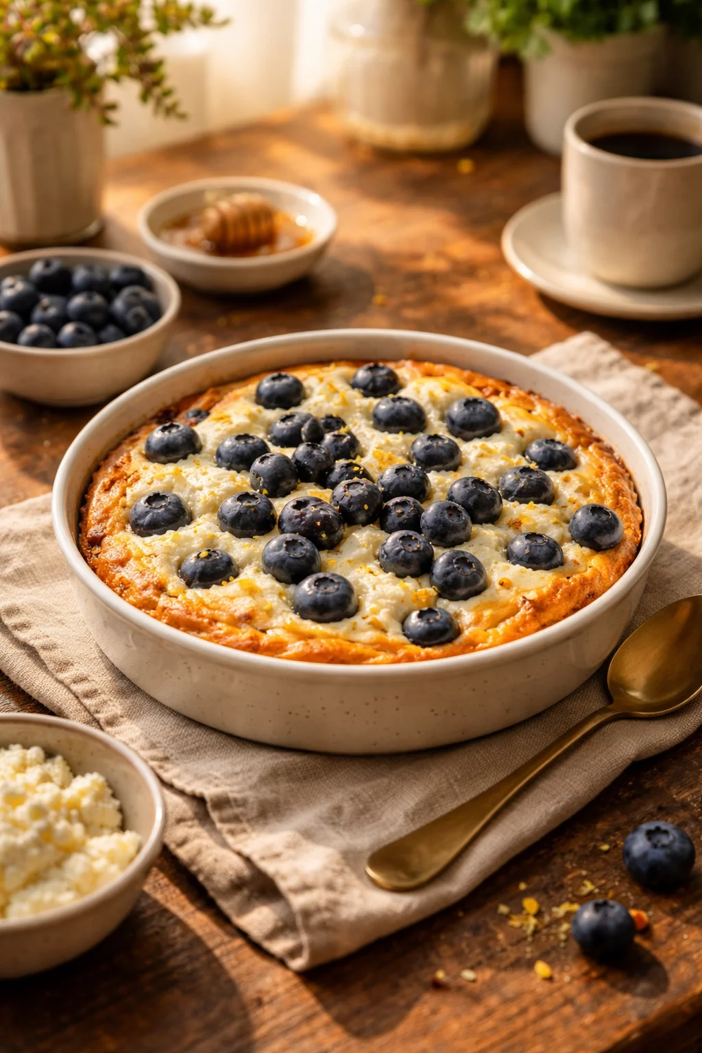 Let me be real. Breakfast can get boring fast. Oats, smoothies, toast… all fine, but not exactly exciting after a while. That’s why these bowls hit different. They’re warm and spoonable, a little jammy from the blueberries, and creamy like dessert without the sugar crash. If you’re skeptical about cottage cheese, I get it. But give this baked version a chance. The texture changes once it’s blended and baked, turning silky and mellow with just a light tang that pairs perfectly with berries.