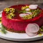 Home » Beetroot Feta Crustless Cheesecake with Dill & Pistachio Dust