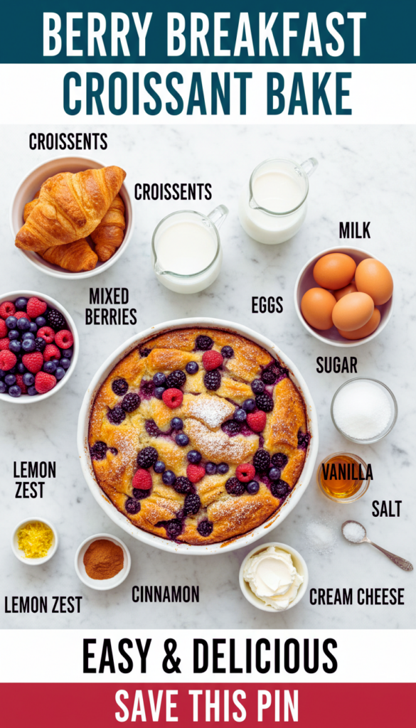 Berry Breakfast Croissant Bake is my go to move when I want a cozy breakfast that feels fancy, but I do not want to stand at the stove flipping pancakes for an hour. You know those mornings when everyone is hungry at the same time, coffee is not working yet, and you need something that basically cooks itself? This is that recipe. It is buttery, jammy, lightly sweet, and it makes the whole kitchen smell like a bakery. Best part is you can prep it the night before and just bake it when you wake up.