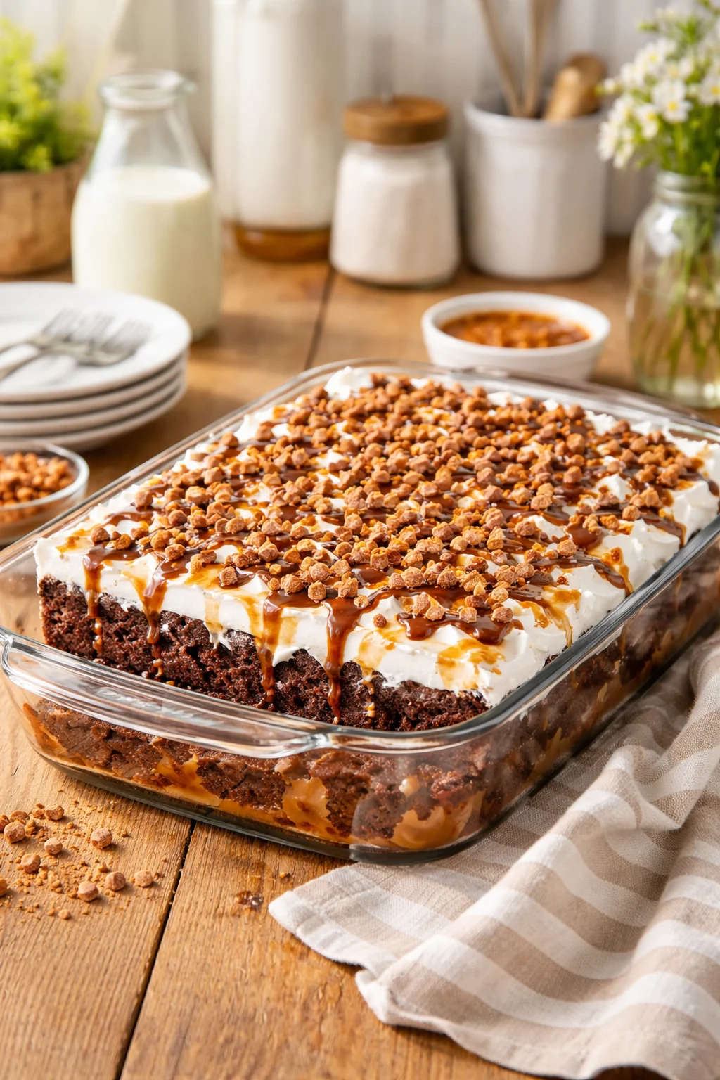 So, the name gets all the attention, but let me tell you what it actually is. Better Than Anything Cake is usually a chocolate cake that you poke full of holes, then soak with sweet condensed milk and caramel. After that, you pile on whipped topping and crunchy bits like toffee. The end result is super moist and super rich, the kind of cake that needs a small slice but somehow makes people go back for seconds anyway.