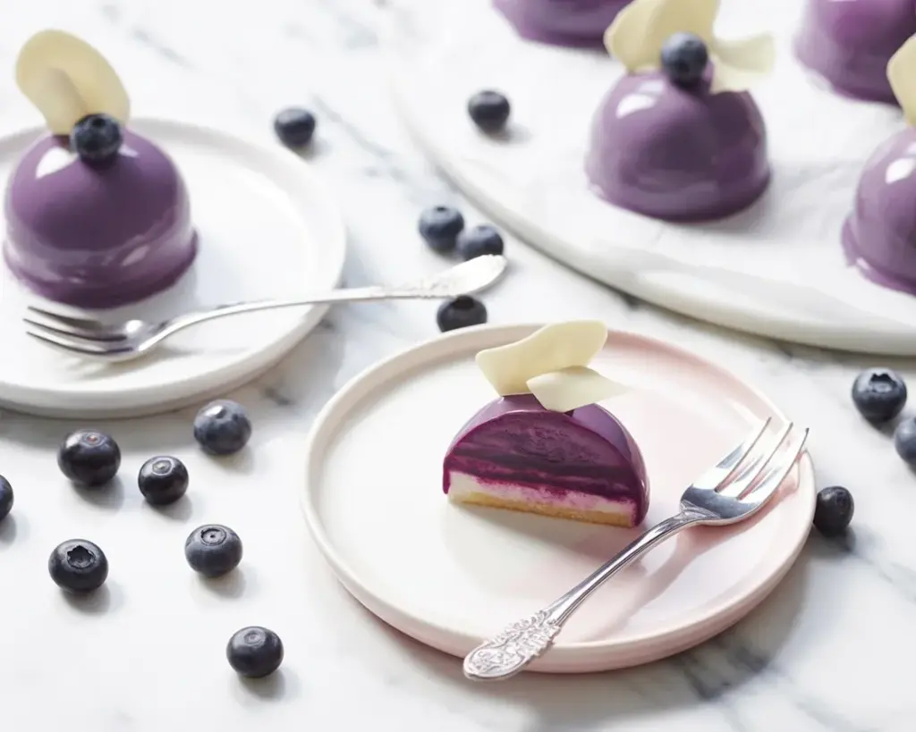 Flavor note: I love a vanilla-almond mousse with a blueberry center, but a lemon mousse also pairs beautifully. The glaze itself is sweet, so keep your mousse balanced with a little citrus or tangy yogurt.
