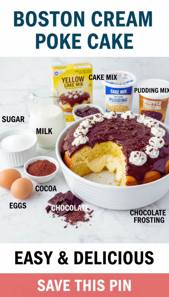 If you have been looking for a no stress dessert that still feels special, Boston Cream Poke Cake is it. You get the soft cake, the creamy vanilla filling, and the chocolate top without any complicated layering or pastry cream drama. For more guidance and another take on it, I like checking Boston Cream Poke Cake – The Country Cook and Easy Boston Cream Poke Cake – The Baking ChocolaTess when I want to compare little tweaks like topping styles. Make it once, stash it in the fridge, and enjoy those “just one more slice” moments.