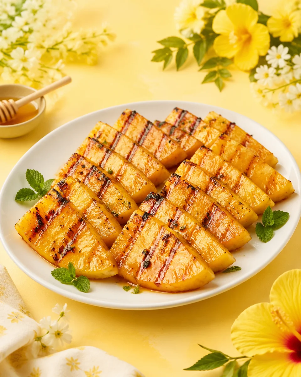 Pineapple has a lot of sugar, and sugar loves to stick. I scrub the grates, then I lightly oil them. Less sticking means prettier slices and less frustration.