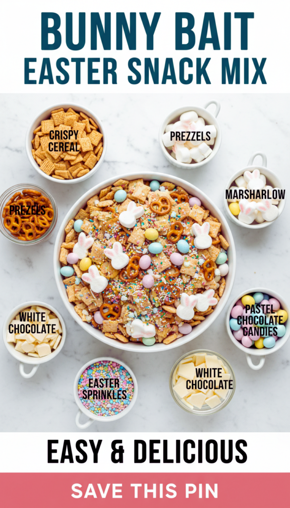 Bunny Bait Easter Snack Mix is my go to solution for that familiar pre holiday panic when you need something cute, sweet, and fast for a class party, a family movie night, or a last minute gift bag. I have made it on sleepy Friday evenings, right before guests show up, and it still turns out adorable every single time. It is basically a crunchy, chocolatey mix with pastel vibes that feels festive without making you spend your whole day baking. The best part is you can tweak it based on what is already in your pantry. If you have kids nearby, they will absolutely “help” by taste testing, so I suggest making a little extra.