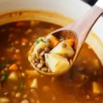 Now, for the broth: chicken, veggie, whatever. Toss in a can of tomatoes if you’re feeling wild. No one will stop you. Season generously—salt, pepper, a bay leaf if you’re fancy. Simmer until the lentils and potatoes are tender. Taste, then panic over your salt content, then relax when you realize it tastes great.