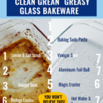 Greasy glass bakeware doesn’t have to be your nemesis. Between sugar scrubs, secret spa tricks, and the right music, even the worst scouring feels doable. Thereโs seriously no shame in making the job as pleasant as you canโand if you ever need more cleaning hacks, Ashley Poskin at The Kitchn is my go-to, or try The Blender Girlโs natural glass cleaner for bonus eco vibes. Happy cleaning, and donโt forget: lifeโs too short for crusty pansโor unhappy hands!