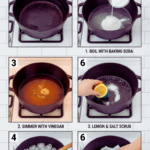 - Let it marinate for a few hours, then scrub with a non-scratch pad.
