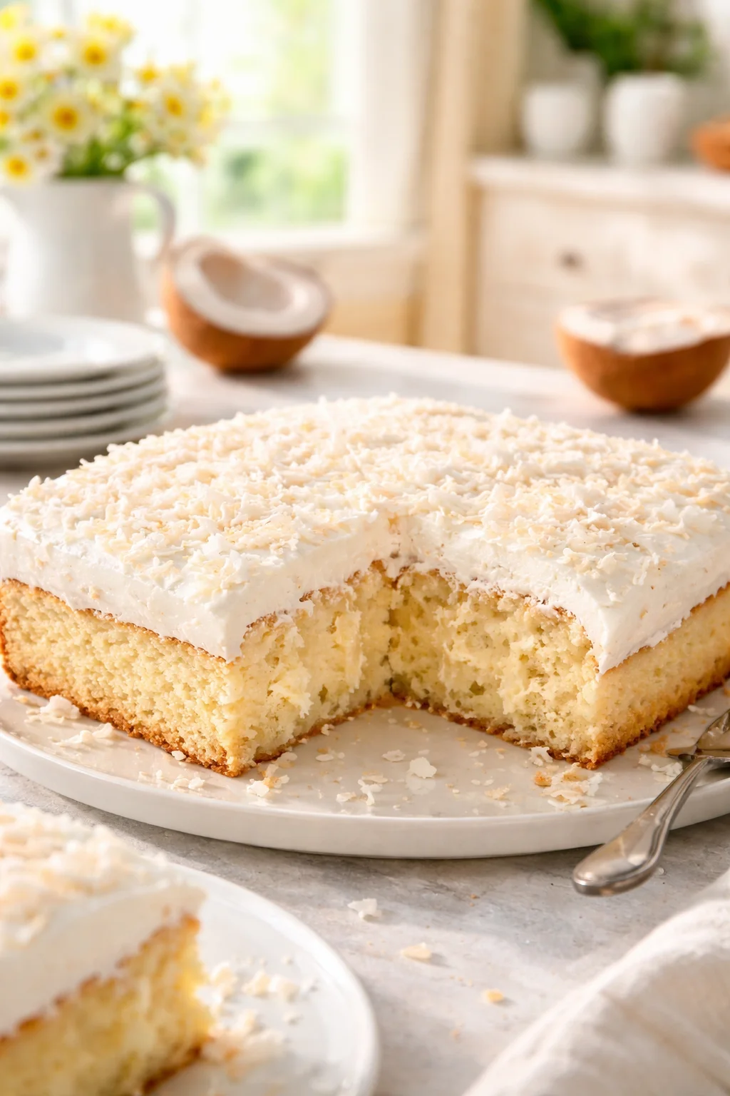 The fun part is that once you get comfortable with the poke cake idea, you can play around with flavors. Coconut works beautifully because it stays soft and creamy after chilling, which is basically what you want from this style of cake.