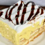 I call this the best cream puff dessert because it gives you everything you love about cream puffs in a simple pan. The base is a light choux dough that puffs up in the oven, then you spread a creamy vanilla filling over it and finish with a glossy chocolate drizzle. It cuts neatly, chills beautifully, and tastes like clouds.