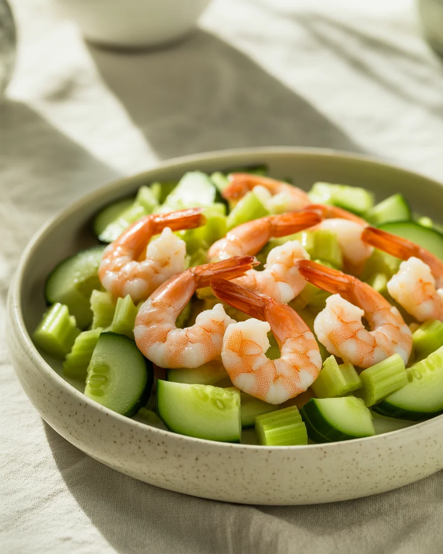 If you like bright, simple flavors with a creamy bite, this salad is going to be your new favorite. The texture is spot on. You get that crisp cucumber crunch, the gentle snap of juicy shrimp, and a dressing that feels light but clings to everything just right. It is refreshing enough for a hot afternoon, yet filling enough to be lunch.