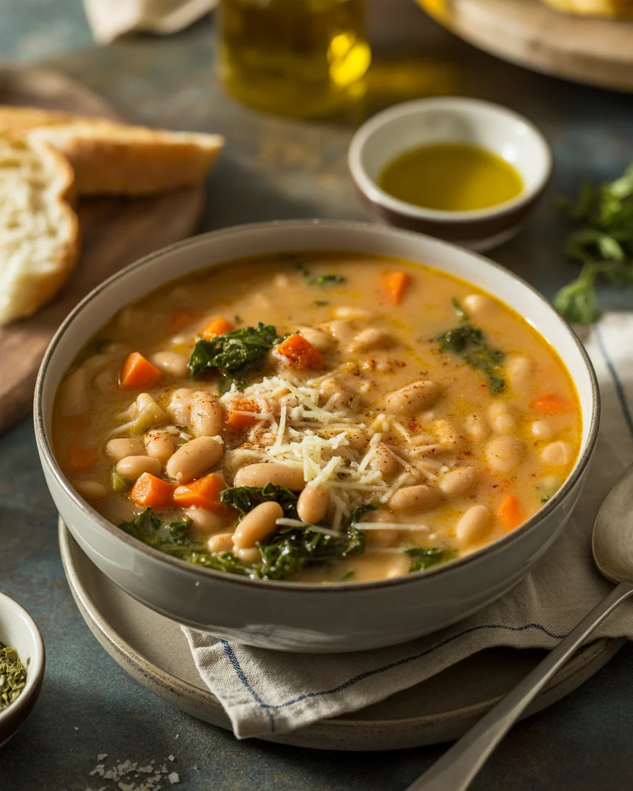 A warm and filling soup made with navy beans, perfect for chilly days and budget-friendly dining. Customize with ham, veggies, or make it vegan!