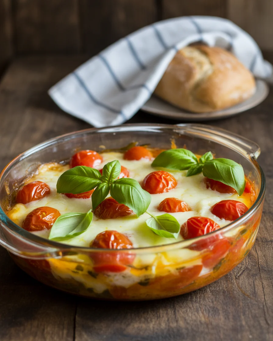 Pro tip: If you are using fresh cherry tomatoes, toss them in a tiny bit of oil and salt, roast on a sheet pan for 8 minutes, then tuck them into the cheese before baking. They turn jammy and sweet.