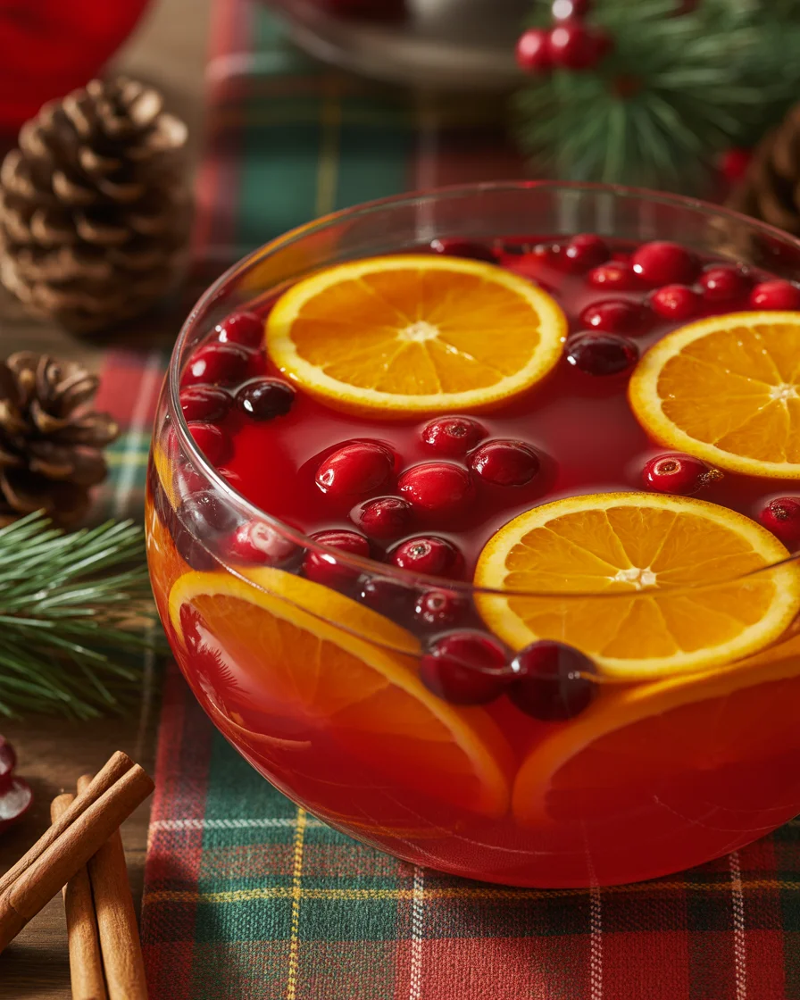 - Fresh fruit for garnish: orange slices, lime rounds, rosemary sprigs, and cranberries