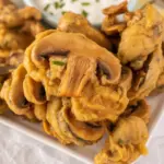 Alright, listen. Hands down, this is my absolute favorite mushroom recipe. And it’s not only because it tastes like you dragged yourself out to a bar on a Friday (without actually putting on shoes). There’s something magical about the crunch against the juicy mushroom, plus that cool, tangy ranch just ties the whole thing together.