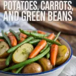 A cozy and crispy blend of potatoes, carrots, and green beans roasted with garlic and herbs, perfect for a flavorful, easy weeknight meal.