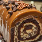 Gooey Chocolate Caramel Turtle Cake Roll