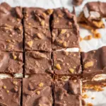 Bake until the marshmallows puff, turn golden, and maybe look like they’re about to burst. Usually 15 to 18 minutes. Let the pan cool before slicing, unless you wanna risk bulldozing through a molten chocolate swamp (which, honestly, I have no issue with).