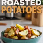 Perfect roasted potatoes should be crispy on the outside and soft on the inside. With this method, the bacon fat helps blister the edges, while tossing the potatoes with a little oil first gives an even coating. You will hear that gentle crackle when you lift them from the pan. That is your sign you did it right.