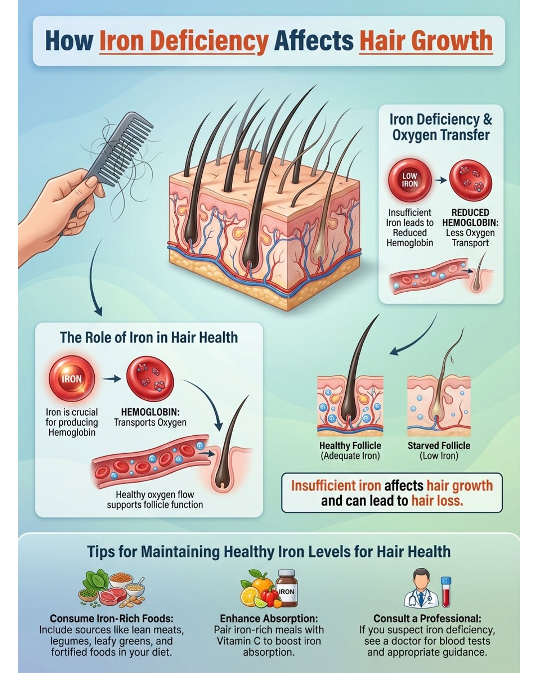 Ever gotten stuck wondering why your hair seems to be everywhere—except on your head where it belongs? How Iron Deficiency Affects Hair Growth is a question that’s popped up a lot, especially for folks (myself included) who notice extra hair in the shower drain. I mean, who hasn’t had a mild panic after combing out a handful of strands? Sometimes, it’s not just stress or bad hair days—iron can be a sneaky culprit. If you’re also curious about how other habits can mess with your scalp, check out how sleeping with wet hair affects scalp health or if you’ve got mystery symptoms, take a peek at these 6 symptoms vitamin deficiency show on your face. Spoiler: your body doesn’t always whisper its secrets.