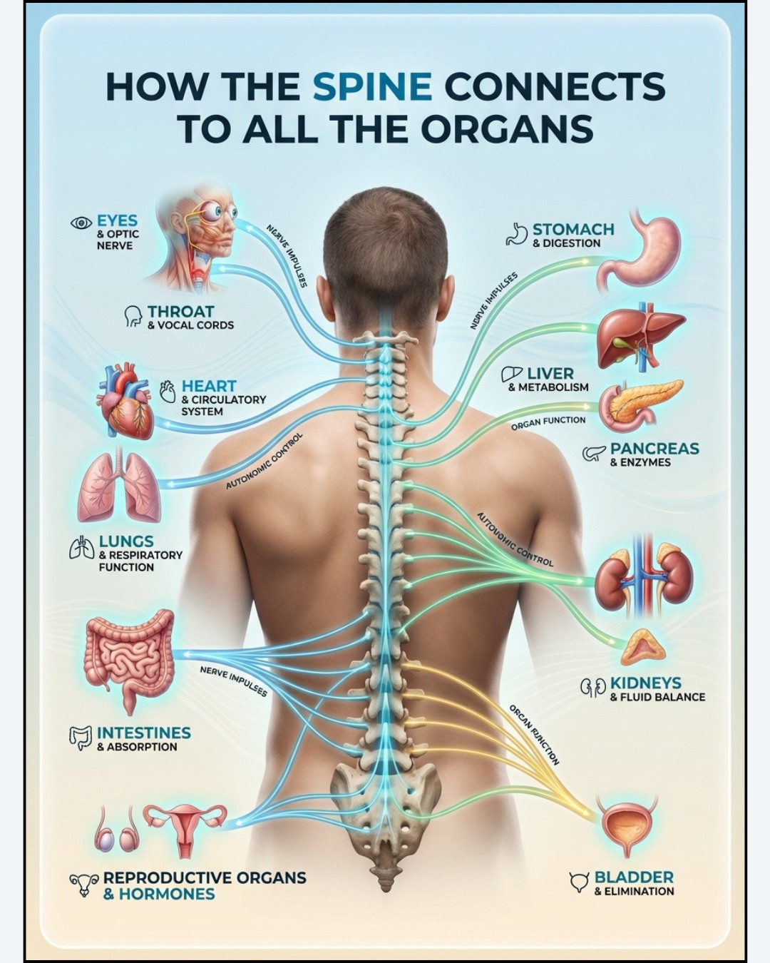 - Each part of your spine controls or connects with a group of organs (who knew?).