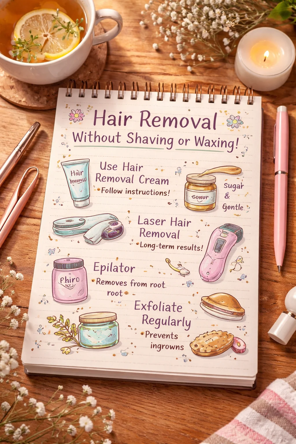 Ugh, How To Remove Hair Without Shaving Or Waxing? Yep, you and me both. I mean, I’ve had my fair share of “Oops, missed a spot” after shaving in a rush—plus, those itchy bumps are just the worst, aren’t they? Sometimes you want silky skin minus the drama (or, let’s be real, the bloodshed and red dots that come with razors). So if you’re dreaming of skipping the wax strips but still keeping things smooth, you’re in the right spot. Oh and hey, if you’re all about making your pampering routine easier, peep my favorite trick for shinier hair using apple cider vinegar. Plus, sometimes you need a break from beauty stuff—trust me, learning how to clean stubborn stains off painted walls is oddly satisfying and guilt-free.
