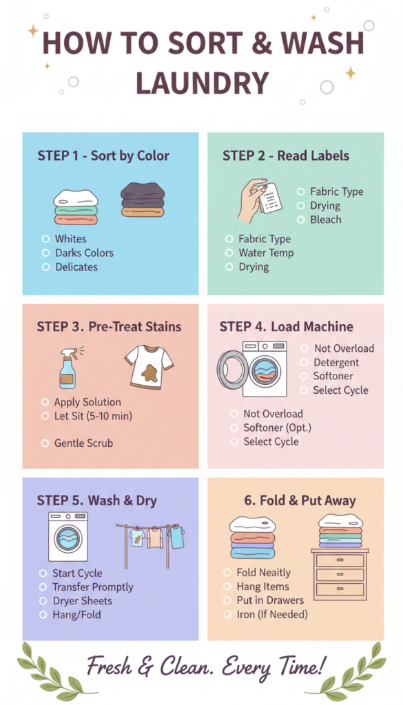 Let’s get straight to it—how to sort & wash laundry (so you don’t accidentally end up with one pink sock and three shrunken t-shirts). If you’re anything like me, you’ve probably pulled a bright-red disaster out of the dryer at least once—oof, unforgettable. Laundry can feel like an unsolvable mystery sometimes, honestly. And if you’re juggling messy kids, pets, or—guilty—occasionally forgetting a towel in the hamper a tad too long, it only gets trickier. Sorting your clothes first isn’t just for organized people (I’m, uh, proof), it’s for anyone who wants their stuff to stay nice. Oh and if you’re tackling other big-clean jobs, these 5 easy ways to clean a dishwasher are worth a peek, or maybe check how vitamin deficiencies show on your face if you’re in a self-care mood.