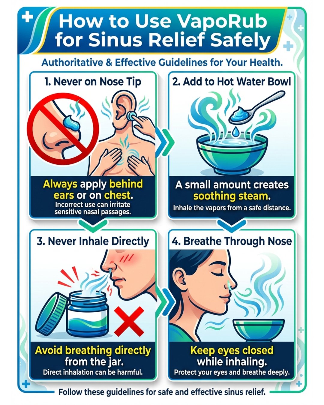 Yes, and this is the part I never skip. Sinus congestion makes people desperate, and desperation makes us do weird stuff. But VapoRub is strong, and it is meant for external use only.