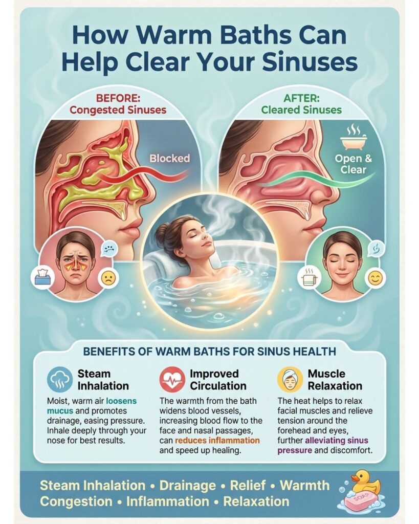 So, next time your head feels like a concrete block, try a warm bath before reaching for that medicine cabinet. It’s old-school, but it works. And hey, if you’re all about supporting your body naturally, you might like checking out ways your face reveals what part of your body is sick or figuring out how your sleeping position can affect health. For even more tips on sinus care, don’t miss these guides on Sinusitis Dos and Don’ts – WebMD and handy sinus infection home remedies from doctors. Trust me, don’t knock the power of a warm bath till you’ve tried it—sometimes, the simplest solutions are the best.