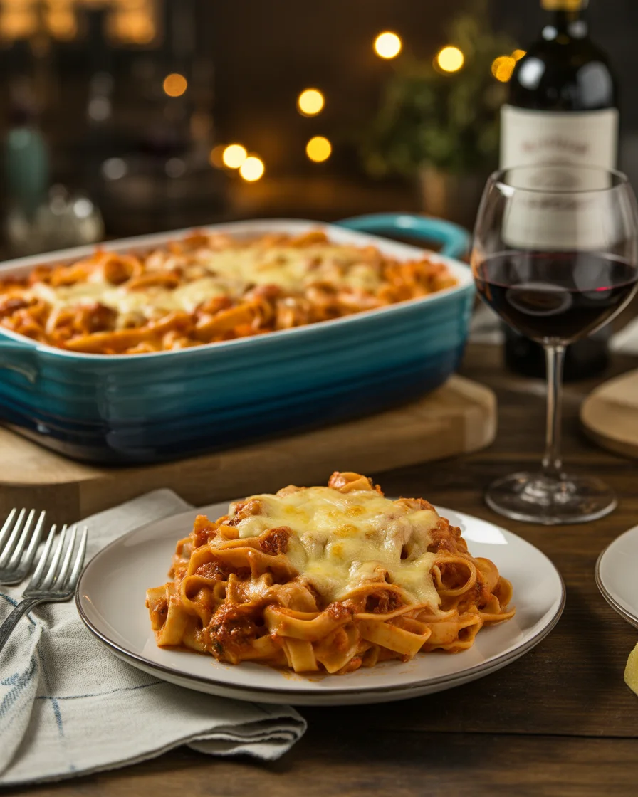 Reheat individual portions in the microwave with a splash of water to keep pasta tender. Or reheat in the oven at 325°F covered until hot, then uncover for a few minutes to refresh the top. If you’re hosting and want another hearty bake in the lineup, this flavorful Smothered Pork Chop Scalloped Potato Casserole holds up great for make ahead and reheating.