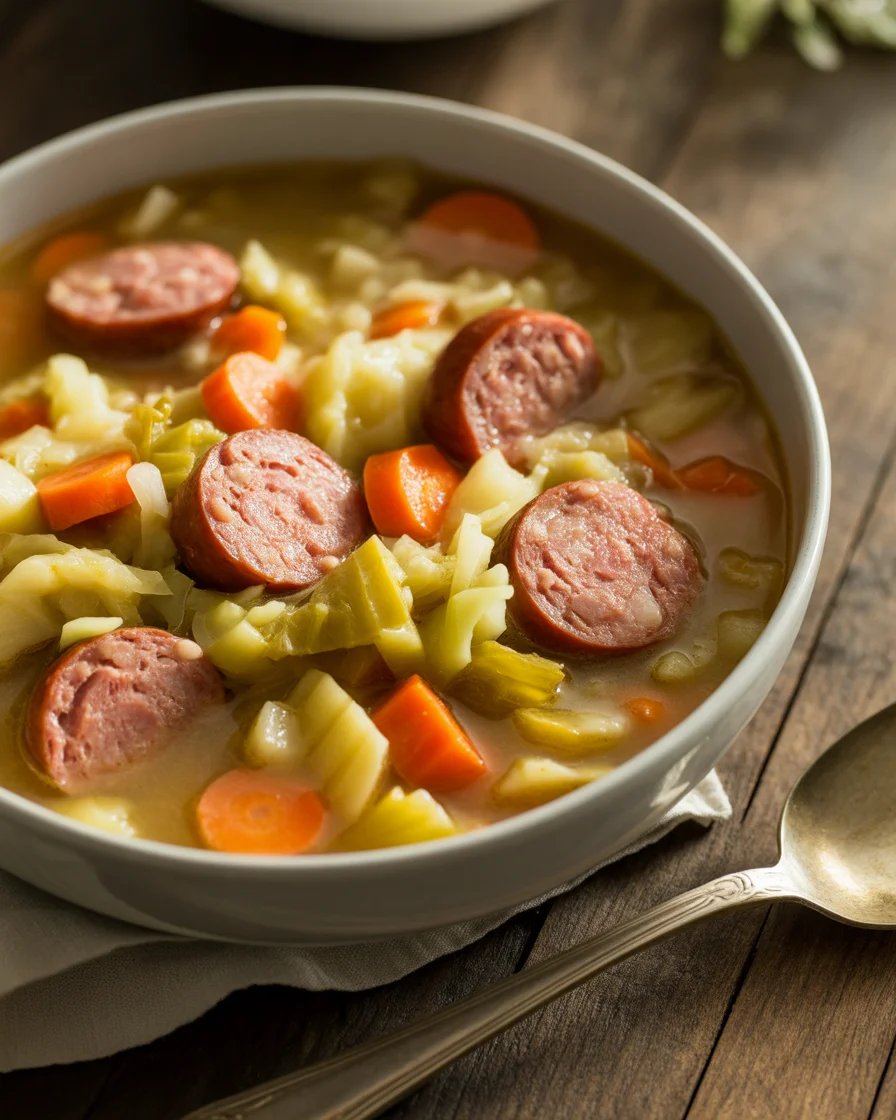 If sodium is a concern, rinse the kielbasa coins under warm water briefly before browning, and use a low sodium broth. You can also bulk up the veggies. Double the cabbage, toss in extra carrots, or add celery. The broth will be lighter but still satisfying. A finish of parsley or dill helps, and a small spoon of olive oil at the end adds a nice sheen without heavy cream.