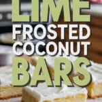 Beat softened cream cheese and a bit of butter until creamy. Add powdered sugar, fresh lime juice, lime zest, vanilla, and a tiny pinch of salt. You want it thick but spreadable. If it’s too thin, add a little more powdered sugar; if it’s too stiff, a splash of lime juice fixes it. Spread over the cooled bars and sprinkle with more coconut. Chill 20 to 30 minutes so the frosting sets for clean slices.