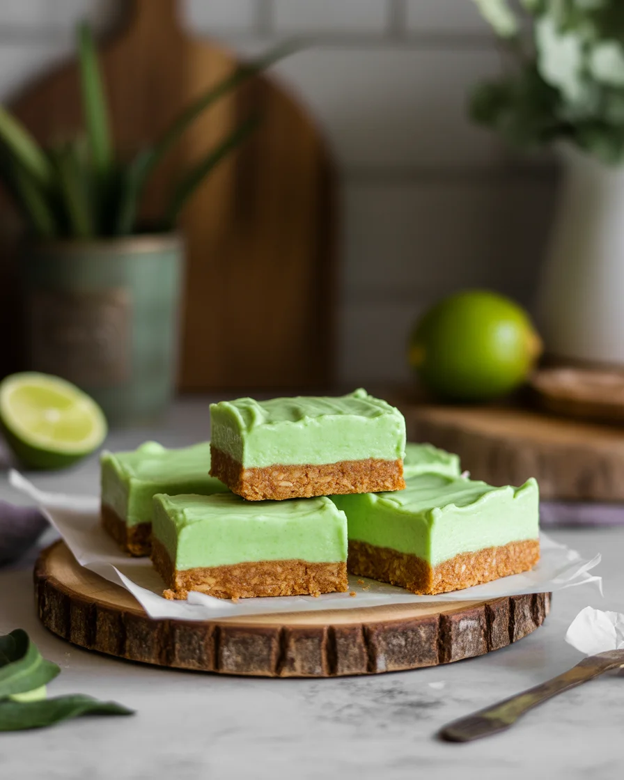 Serving and storage: bars keep in the fridge for 4 to 5 days in an airtight container. The lime flavor deepens on day two. For longer storage, freeze cut squares on a sheet, then bag for up to two months. Thaw in the fridge and serve chilled or at room temp.