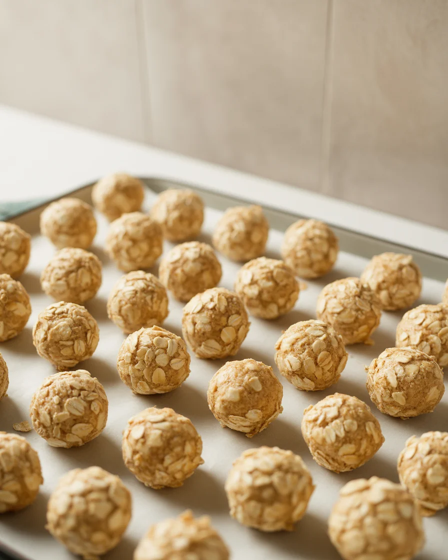 - Line a tray: Set a sheet of parchment paper on a baking tray so the balls do not stick.