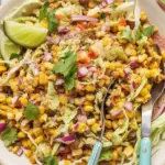 Elote is that dreamy mix of charred corn, mayo, chili, lime, and cotija. Now imagine all that flavor hugging a mountain of crisp green and purple cabbage, a handful of sweet corn, with scallions and cilantro tucked in. That’s the moment elote meets slaw, and honestly, taco night will never be the same.