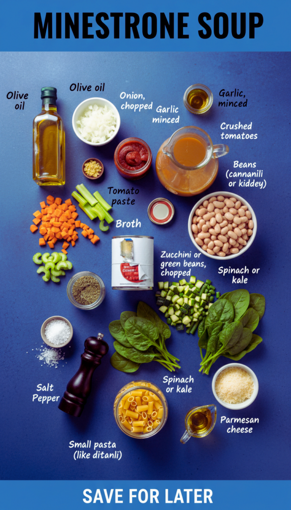 MINESTRONE SOUP is the thing I make when I open the fridge, see a bunch of random vegetables, and just cannot deal with another complicated dinner. You know those days when you want something cozy, but you also want it to feel like you did something good for yourself? That is this soup for me. It is hearty without being heavy, and it tastes even better the next day. If you have picky eaters, this is also a sneaky way to get a rainbow of veggies into one bowl.