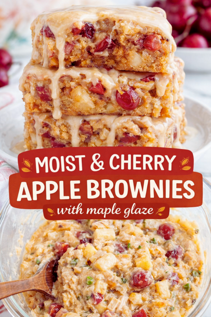 Moist & Cherry Apple Brownies with maple glaze are my answer to that very specific craving when you want something chocolatey, but also kind of fruity and cozy. You know the feeling, like you have apples sitting on the counter getting a little too soft, and you are bored of muffins. These brownies are dense in the best way, with little pops of tart cherry and soft apple bits tucked into the batter. Then you pour on a quick maple glaze and suddenly the whole pan feels a little fancy. I make them when friends are coming over, but I also make them just because I want a treat with my afternoon coffee.