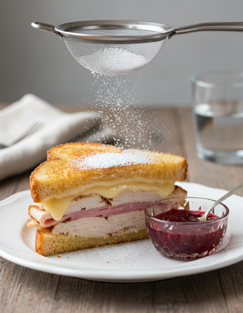 People do get creative. Sometimes it’s deep-fried (what isn’t these days?), sometimes just pan-griddled, and honestly, both versions are scrumptious. You can cut them into little triangles like fancy tea sandwiches, or go big and serve the whole gooey slab with jam for dunking. Don’t forget that dusting of powdered sugar. Or skip it— I won’t tell. There’s no one right way to do a Monte Cristo sandwich. Just own it.