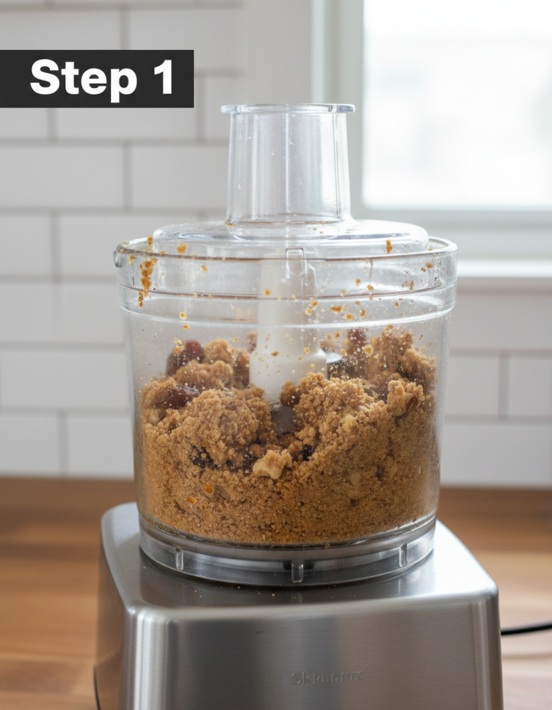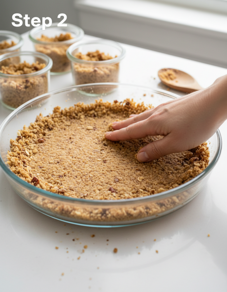 - For the crust, blend together crushed graham crackers or dates and nuts until sticky.