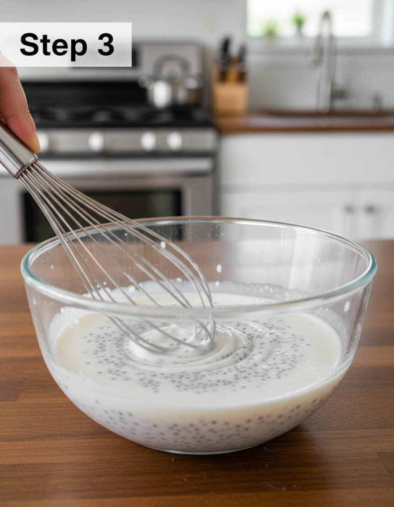 - In a bowl, mix chia seeds with milk or milk alternative thoroughly.