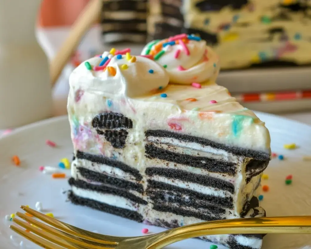 No-Bake Funfetti Oreo Icebox Cake