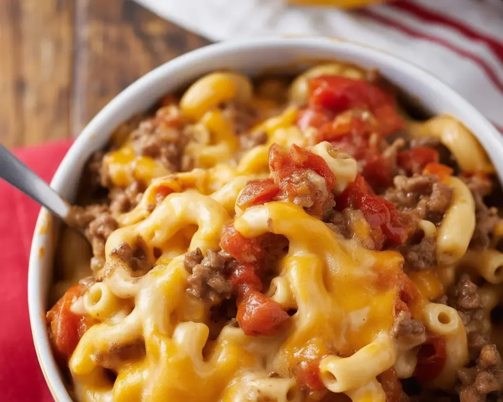 My version leans slightly smoky and garlicky, with a gentle kick from crushed red pepper. I like keeping it flexible so it fits whatever you’ve got on hand. No elbow pasta? Use small shells or rotini. No beef? Try turkey or a plant-based crumble. It’s the kind of meal that works for game night, quick weeknights, or packing in lunchboxes. And if you want a simple dessert to follow, try these old school treats I love, like old-fashioned oven peach cobbler for a sweet finish.