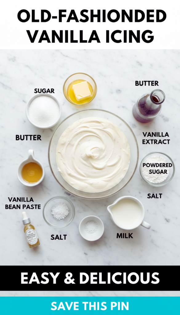 Old-Fashioned Vanilla icing is the thing I reach for when a cake looks a little naked, cupcakes feel unfinished, or I just need a sweet little win on a regular Tuesday. If you have ever tried to frost something and ended up with icing that is either too runny, too stiff, or weirdly grainy, you are not alone. I have been there, with powdered sugar dust all over my shirt and a cake that looked like it lost a fight. The good news is this is one of those recipes you can actually learn by feel, not stress. Let me walk you through my go to method so you get fluffy, smooth, vanilla happiness every time.
