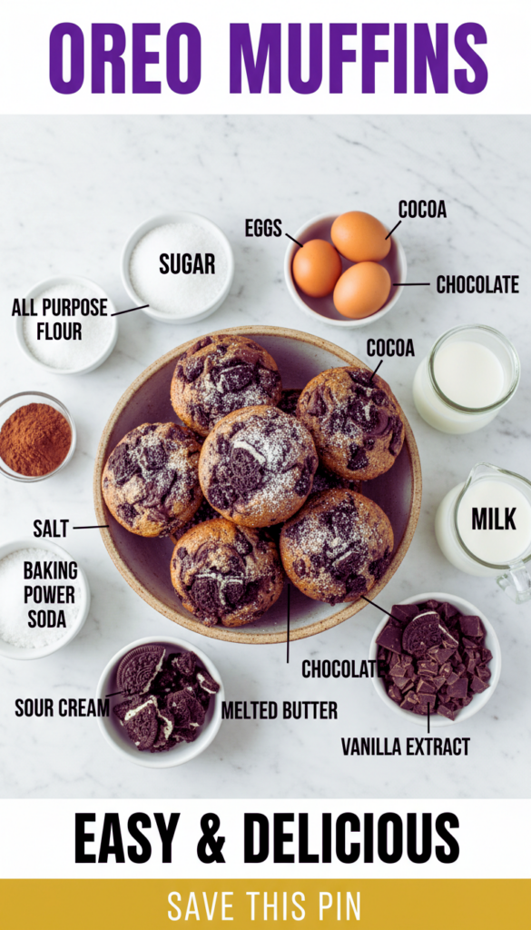 If you try this recipe, you will see why I keep coming back to it. OREO MUFFINS are quick, cozy, and they hit that cookies and cream craving without being complicated. If you want to compare approaches, I found helpful inspiration from Oreo Muffins – Cookie Dough Diaries and also this simple version from Quick & Easy Oreo Muffins – Broken Oven Baking. Bake a batch, stash a few in the freezer, and thank yourself later. And if you do make them, tell me how many you ate warm from the pan because I will not judge.